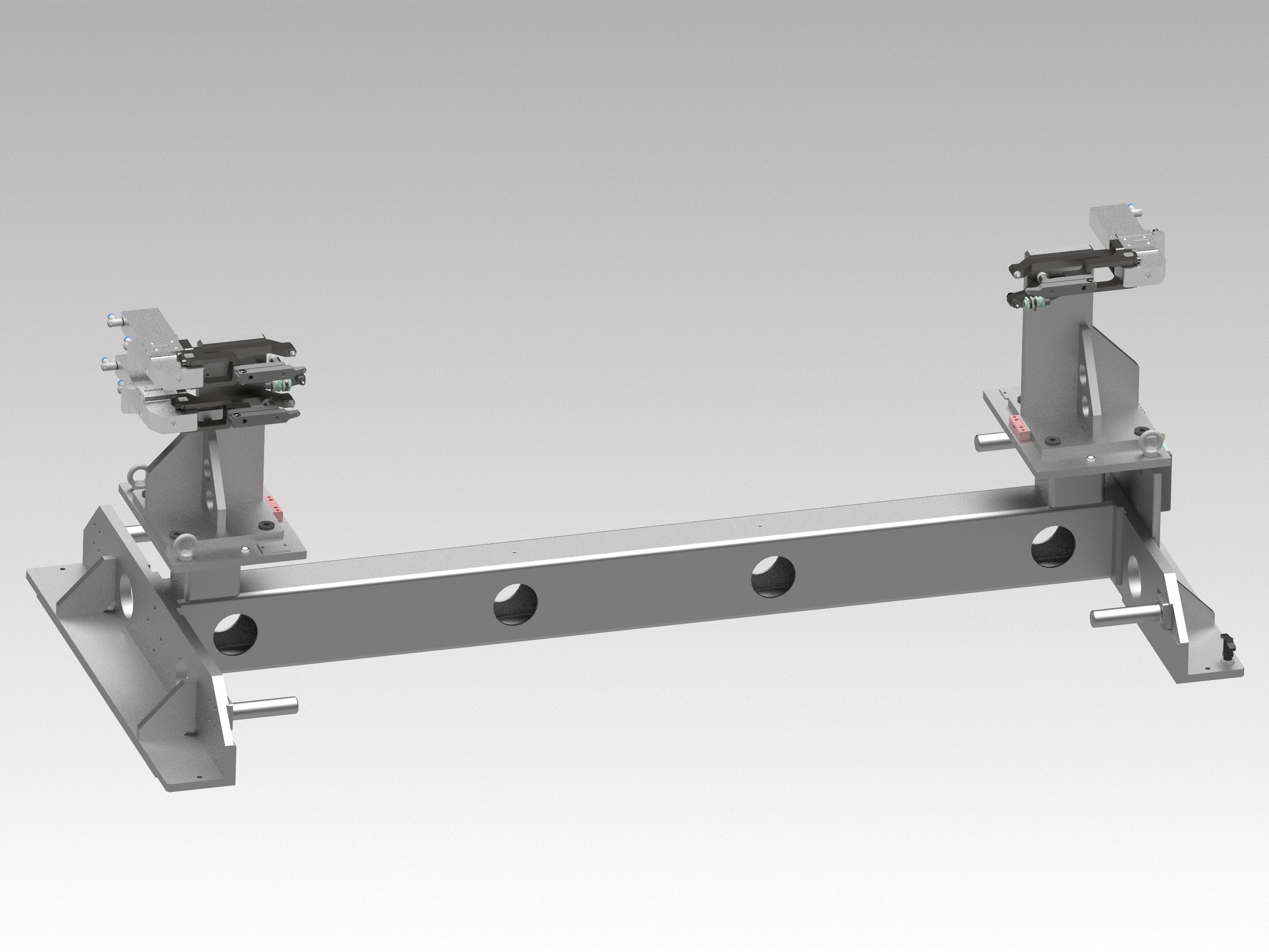 4 points pneumatic clamping fixture made for a subframe part to be used in optical measurement system. With this fixture it is also possible to measure part’s twist, which is sometimes required by car manufacturers.
